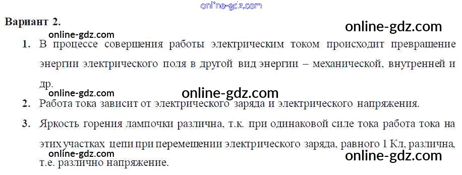 Готовые домашние задания по Физике за 8 класс Самостоятельные и контрольные работы Марон Вертикаль 2017 - СР-№39 Самостоятельные работы Вариант-2