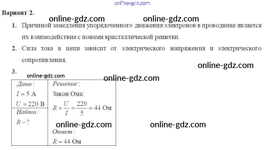 Готовые домашние задания по Физике за 8 класс Самостоятельные и контрольные работы Марон Вертикаль 2017 - СР-№43 Самостоятельные работы Вариант-2