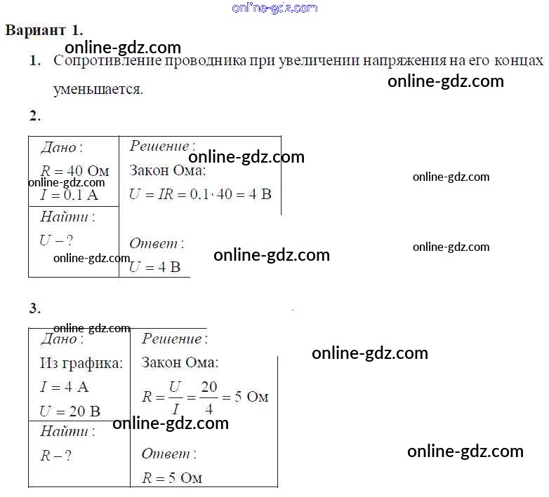 Готовые домашние задания по Физике за 8 класс Самостоятельные и контрольные работы Марон Вертикаль 2017 - СР-№44 Самостоятельные работы Вариант-1