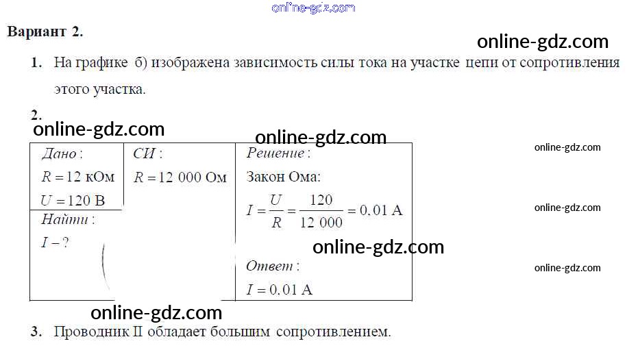 Готовые домашние задания по Физике за 8 класс Самостоятельные и контрольные работы Марон Вертикаль 2017 - СР-№44 Самостоятельные работы Вариант-2