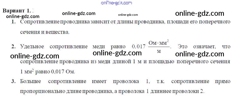 Готовые домашние задания по Физике за 8 класс Самостоятельные и контрольные работы Марон Вертикаль 2017 - СР-№45 Самостоятельные работы Вариант-1