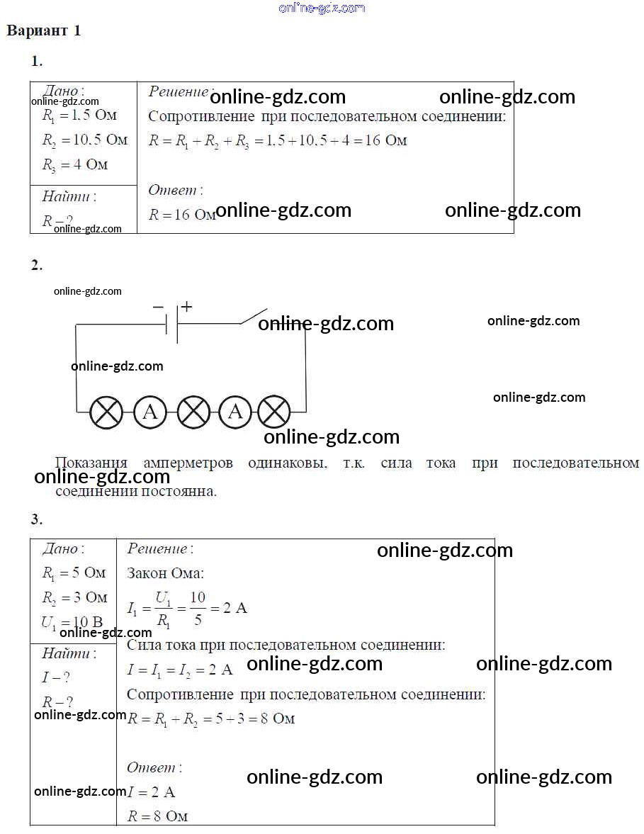 Готовые домашние задания по Физике за 8 класс Самостоятельные и контрольные работы Марон Вертикаль 2017 - СР-№48 Самостоятельные работы Вариант-1