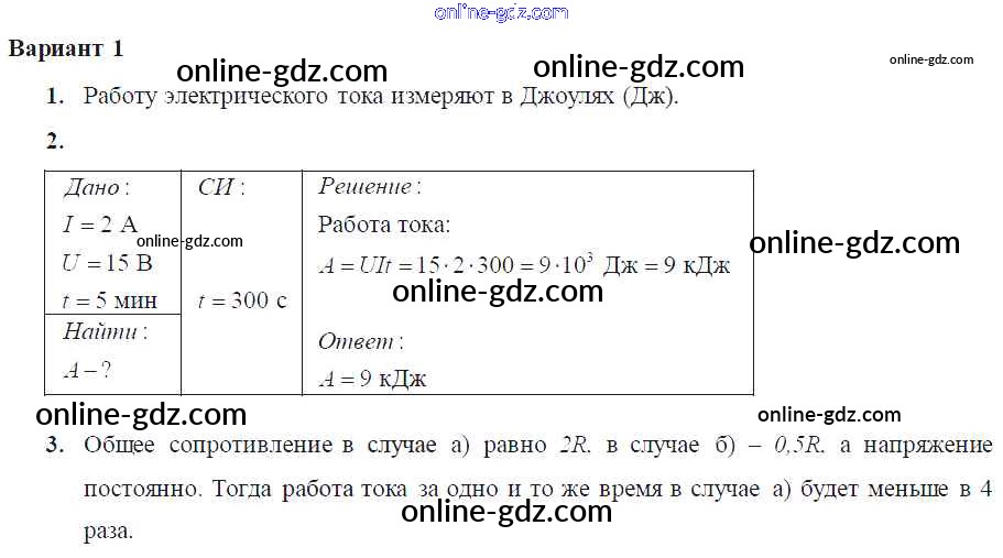 Готовые домашние задания по Физике за 8 класс Самостоятельные и контрольные работы Марон Вертикаль 2017 - СР-№50 Самостоятельные работы Вариант-1