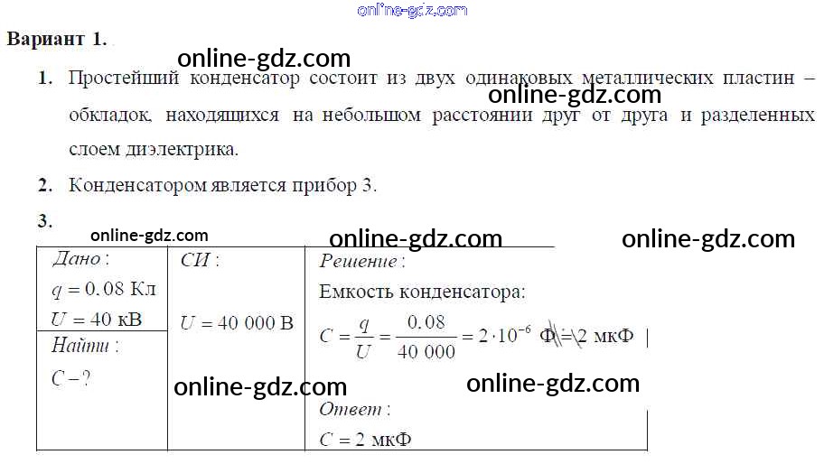 Готовые домашние задания по Физике за 8 класс Самостоятельные и контрольные работы Марон Вертикаль 2017 - СР-№54 Самостоятельные работы Вариант-1