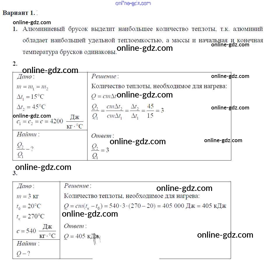 Готовые домашние задания по Физике за 8 класс Самостоятельные и контрольные работы Марон Вертикаль 2017 - СР-№9 Самостоятельные работы Вариант-1