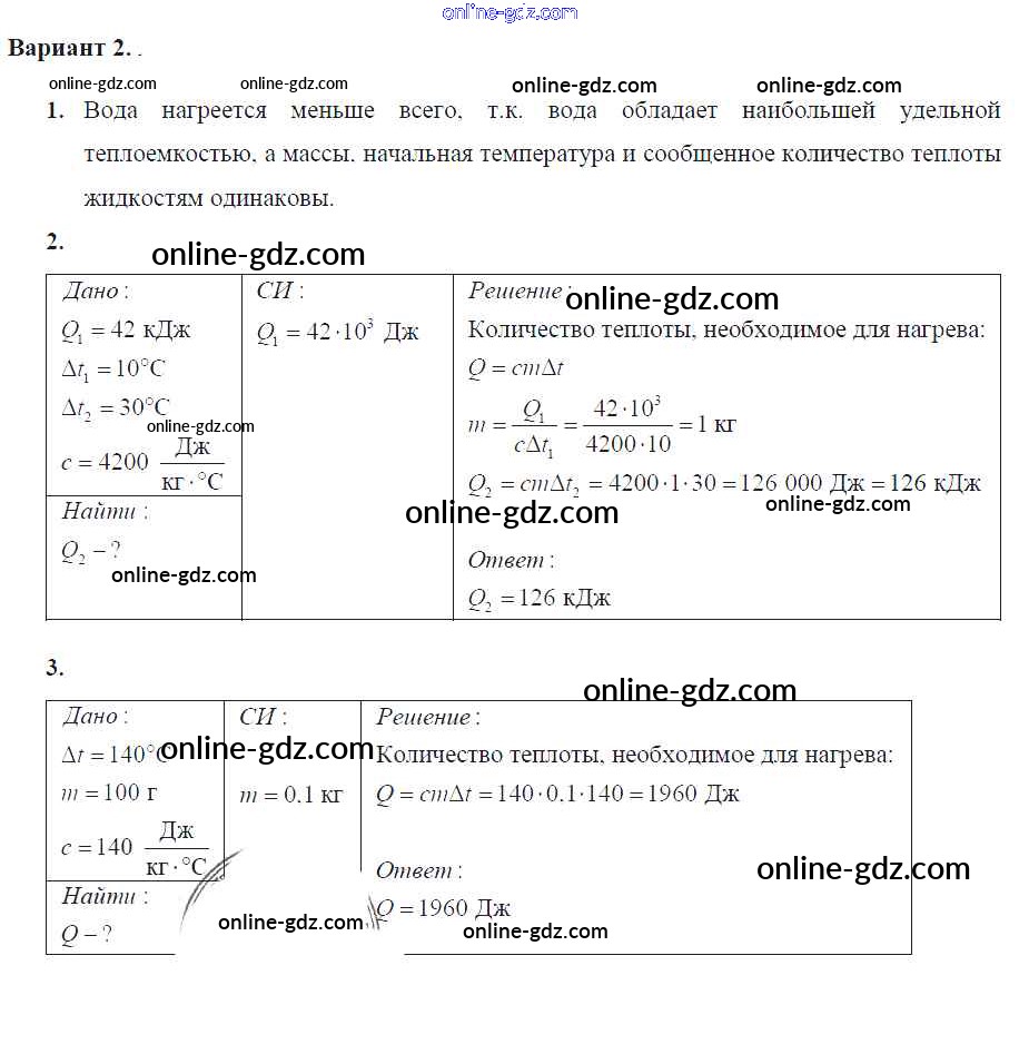 Готовые домашние задания по Физике за 8 класс Самостоятельные и контрольные работы Марон Вертикаль 2017 - СР-№9 Самостоятельные работы Вариант-2