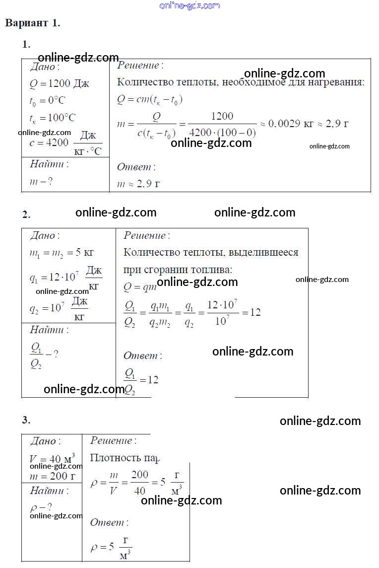 Готовые домашние задания по Физике за 8 класс Самостоятельные и контрольные работы Марон Вертикаль 2017 - КР-№1 Контрольные работы Вариант-1