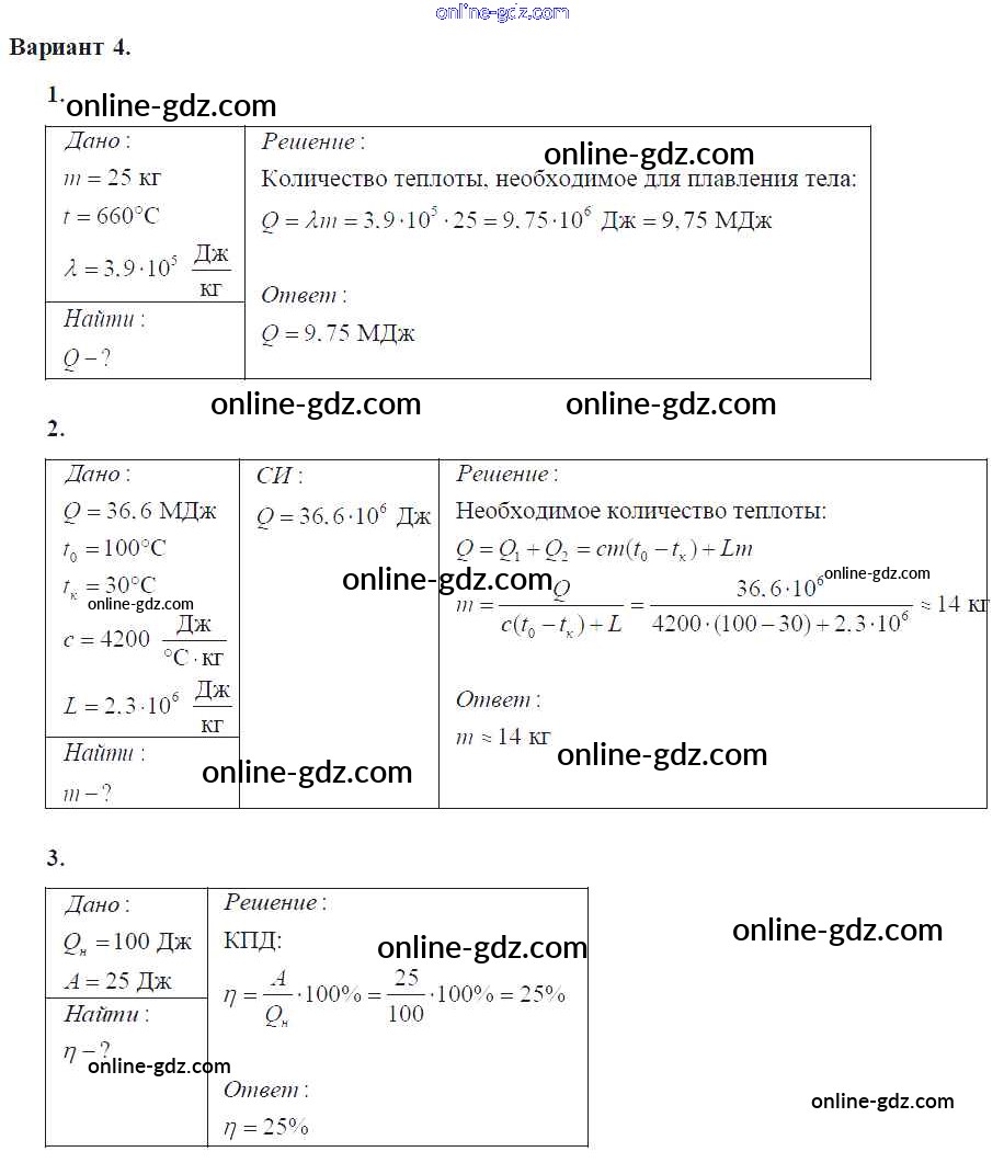 Готовые домашние задания по Физике за 8 класс Самостоятельные и контрольные работы Марон Вертикаль 2017 - КР-№1 Контрольные работы Вариант-4