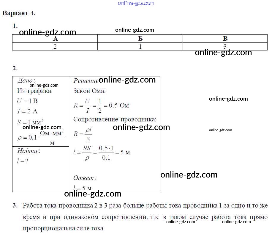 Готовые домашние задания по Физике за 8 класс Самостоятельные и контрольные работы Марон Вертикаль 2017 - КР-№2 Контрольные работы Вариант-4