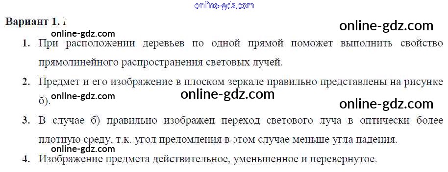 Готовые домашние задания по Физике за 8 класс Самостоятельные и контрольные работы Марон Вертикаль 2017 - КР-№4 Контрольные работы Вариант-1