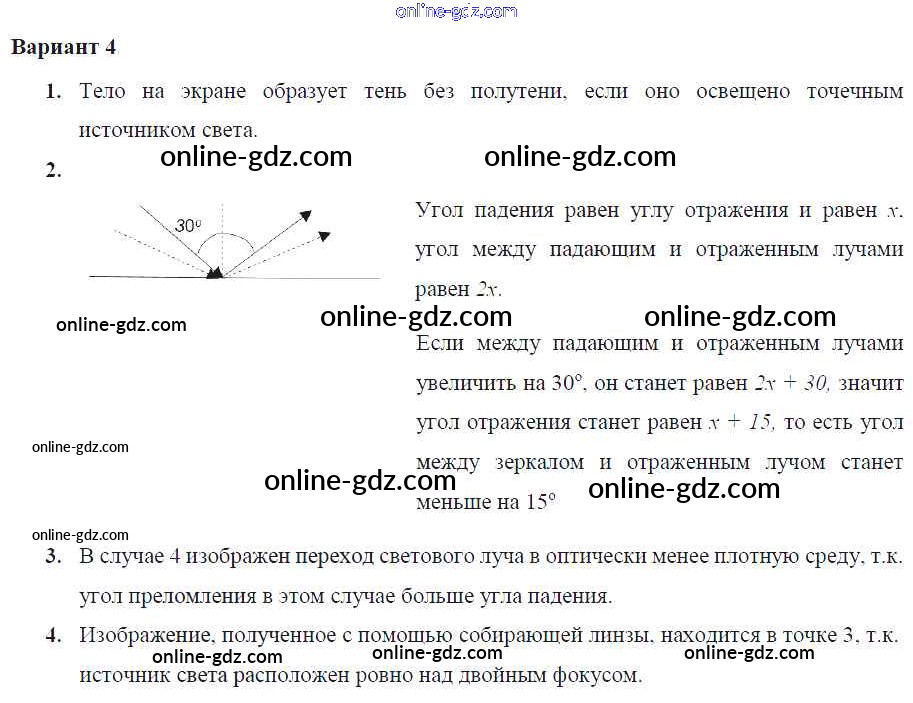 Готовые домашние задания по Физике за 8 класс Самостоятельные и контрольные работы Марон Вертикаль 2017 - КР-№4 Контрольные работы Вариант-4