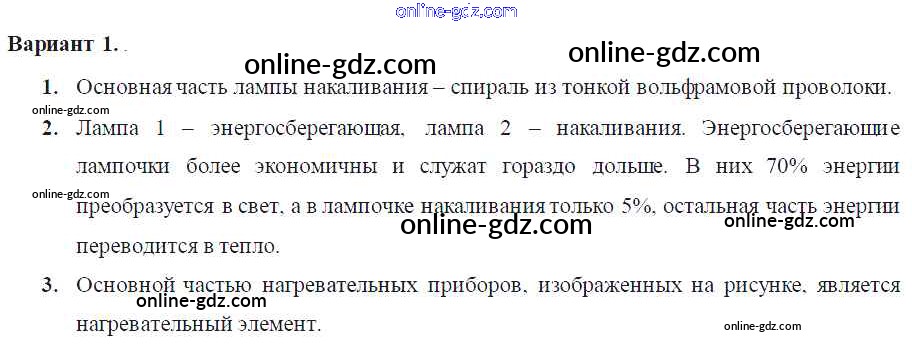 Готовые домашние задания по Физике за 8 класс Самостоятельные и контрольные работы Марон Вертикаль 2017 - СР-№55 Самостоятельные работы Вариант-1