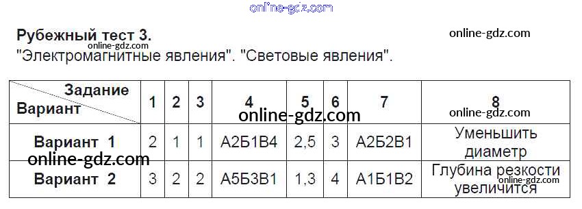 Готовые домашние задания по Физике за 8 класс Тесты Слепнева Вертикаль 2018 - Рубежные тесты 3