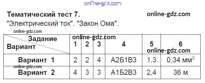Готовые домашние задания по Физике за 8 класс Тесты Слепнева Вертикаль 2018 - Тесты 7