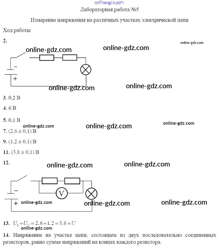 Готовые домашние задания по Физике за 8 класс Тетрадь для лабораторных работ Минькова, Иванова УМК 2014 - Лабораторные работы ЛР №5. Измерение напряжения на различных участках электрической цепи