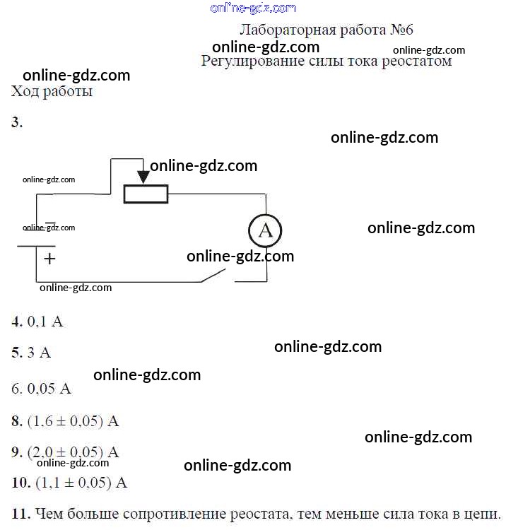 Готовые домашние задания по Физике за 8 класс Тетрадь для лабораторных работ Минькова, Иванова УМК 2014 - Лабораторные работы ЛР №6. Регулирование силы тока реостатом