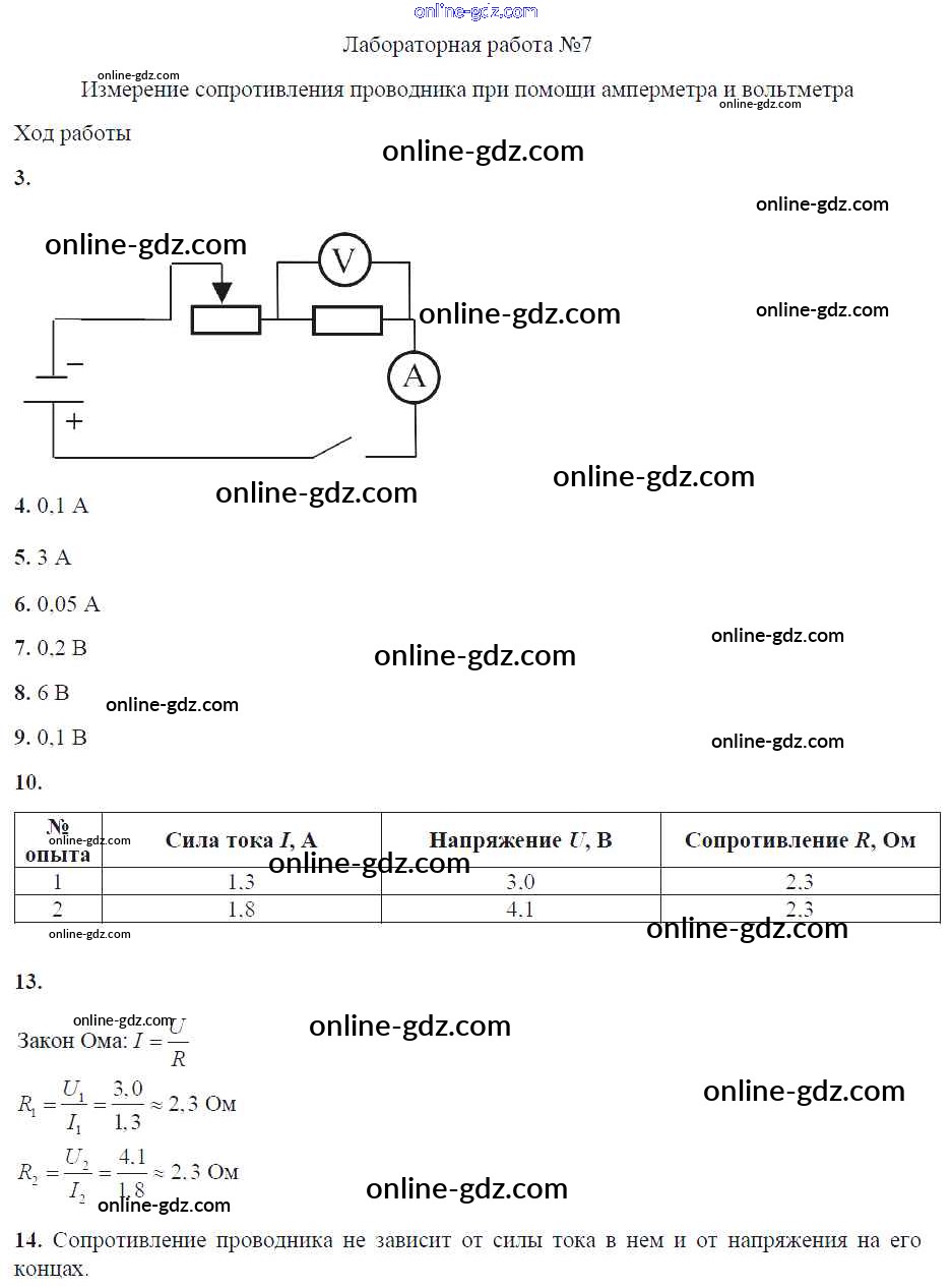 Готовые домашние задания по Физике за 8 класс Тетрадь для лабораторных работ Минькова, Иванова УМК 2014 - Лабораторные работы ЛР №7. Измерение сопротивления проводника при помощи амперметра и вольтметра