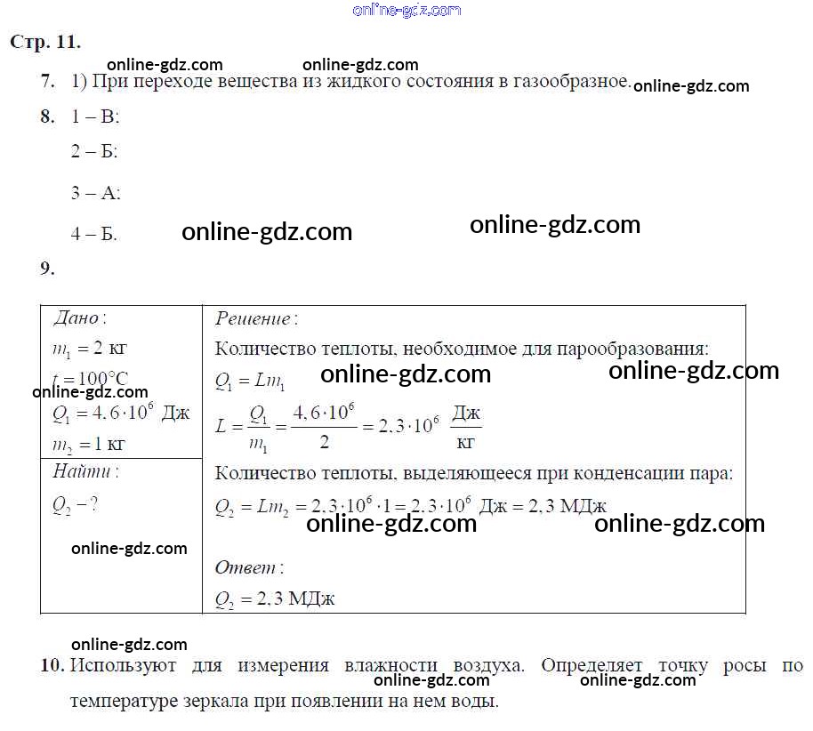 Готовые домашние задания по Физике за 8 класс Тетрадь-экзаменатор Жумаев Сферы 2012 - Страницы 11