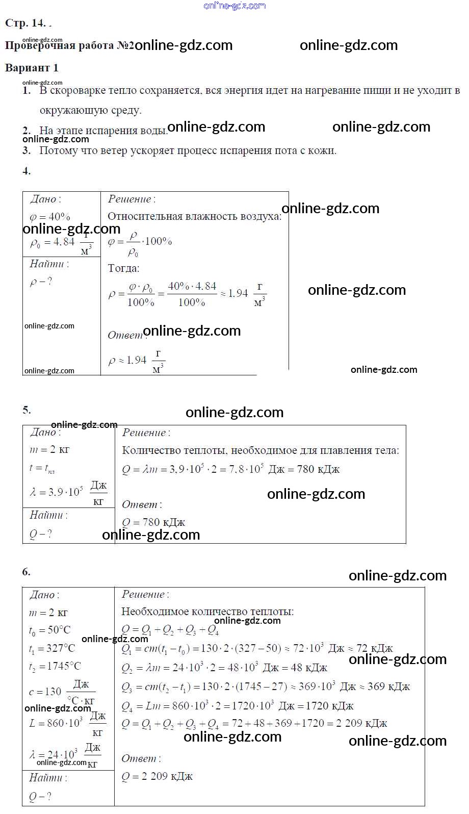 Готовые домашние задания по Физике за 8 класс Тетрадь-экзаменатор Жумаев Сферы 2012 - Страницы 14