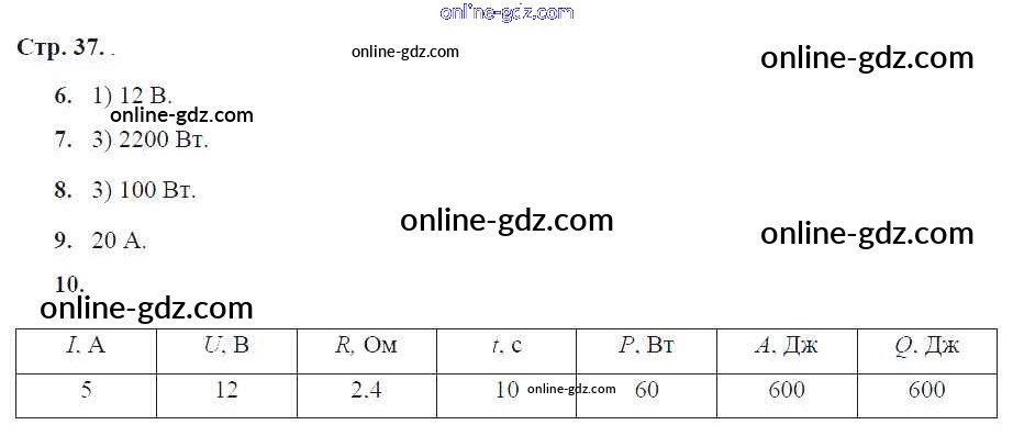 Готовые домашние задания по Физике за 8 класс Тетрадь-экзаменатор Жумаев Сферы 2012 - Страницы 37