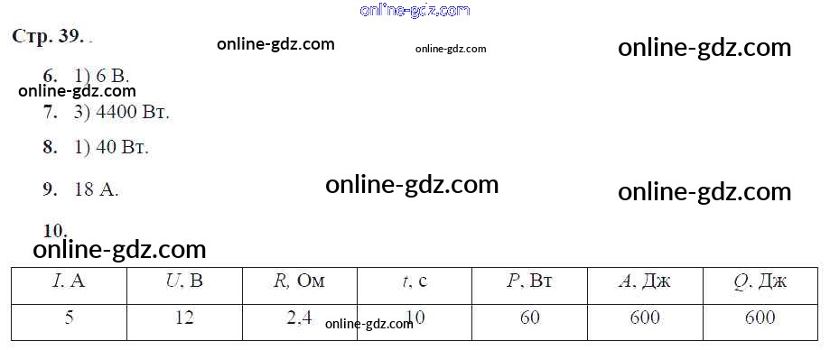 Готовые домашние задания по Физике за 8 класс Тетрадь-экзаменатор Жумаев Сферы 2012 - Страницы 39