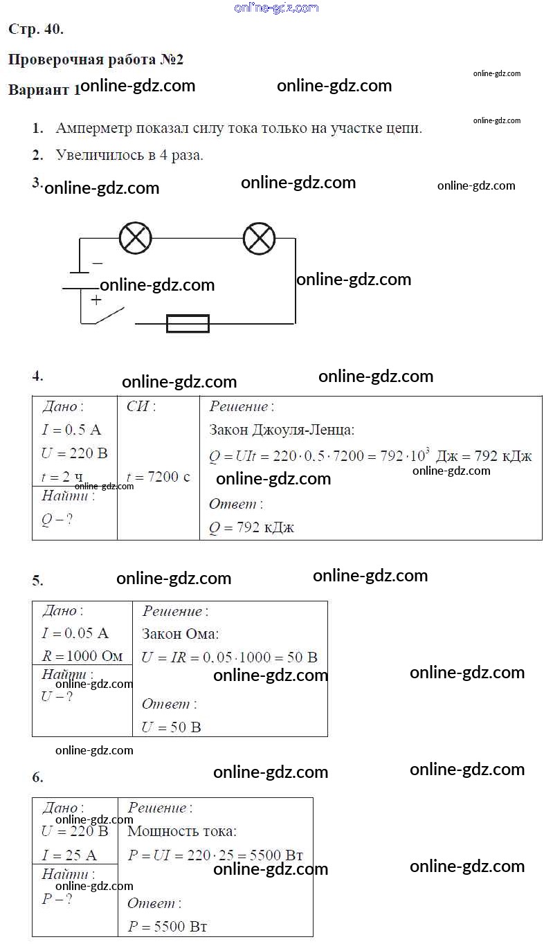 Готовые домашние задания по Физике за 8 класс Тетрадь-экзаменатор Жумаев Сферы 2012 - Страницы 40