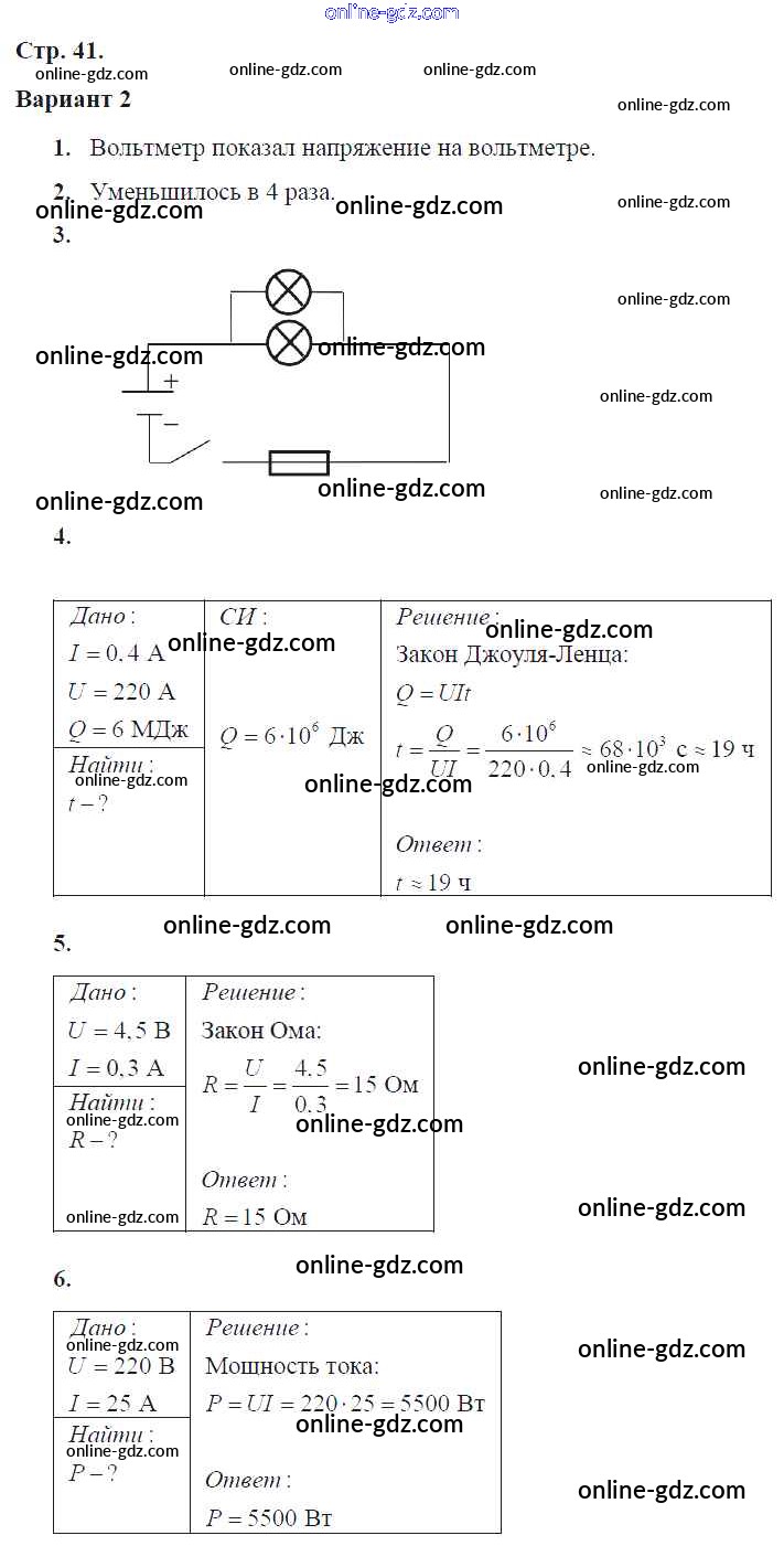 Готовые домашние задания по Физике за 8 класс Тетрадь-экзаменатор Жумаев Сферы 2012 - Страницы 41