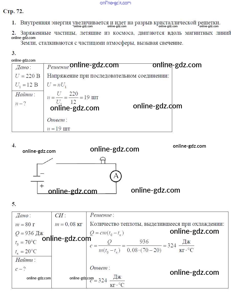 Готовые домашние задания по Физике за 8 класс Тетрадь-экзаменатор Жумаев Сферы 2012 - Страницы 72