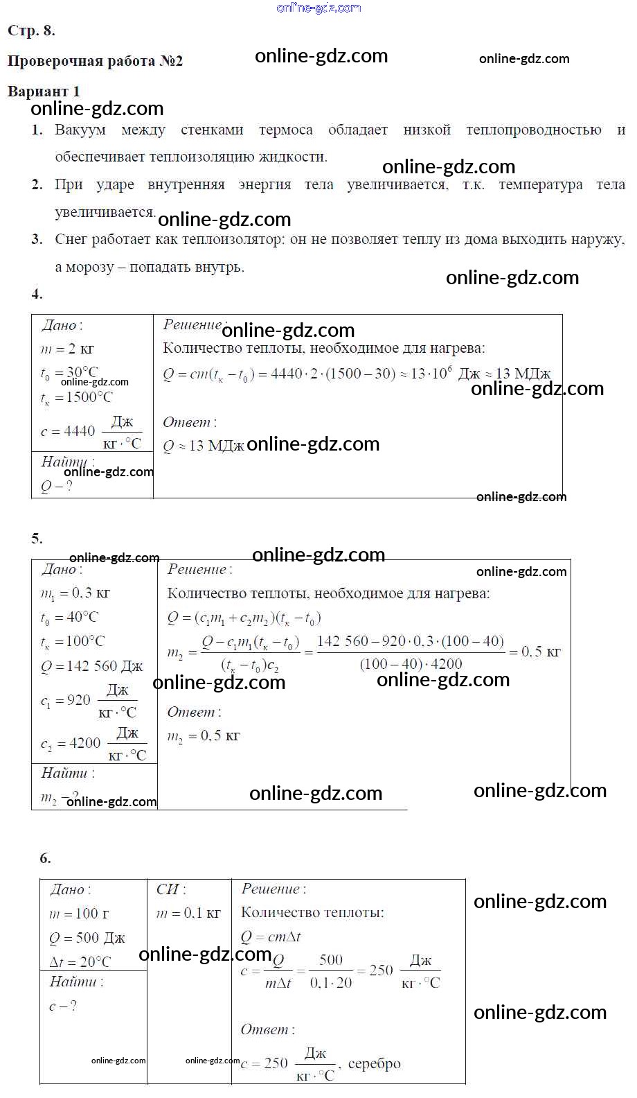 Готовые домашние задания по Физике за 8 класс Тетрадь-экзаменатор Жумаев Сферы 2012 - Страницы 8