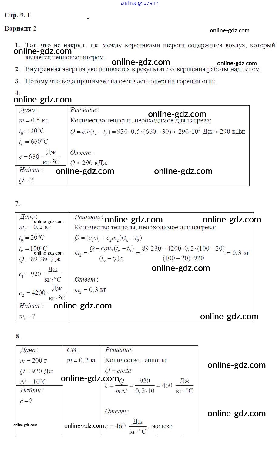 Готовые домашние задания по Физике за 8 класс Тетрадь-экзаменатор Жумаев Сферы 2012 - Страницы 9