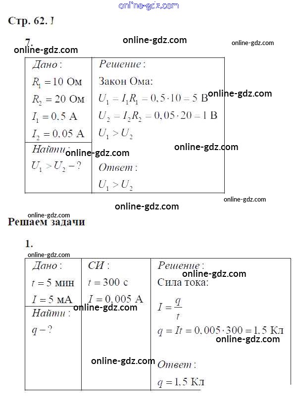Готовые домашние задания по Физике за 8 класс Тетрадь-тренажер Артеменков, Белага Сферы 2012 - Страницы 62