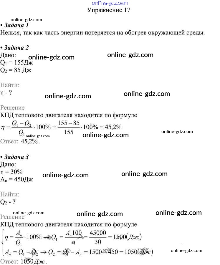 Готовые домашние задания по Физике за 8 класс Учебник Перышкин Вертикаль 2014 - Упражнения Новое издание (бело-красный учебник) 17