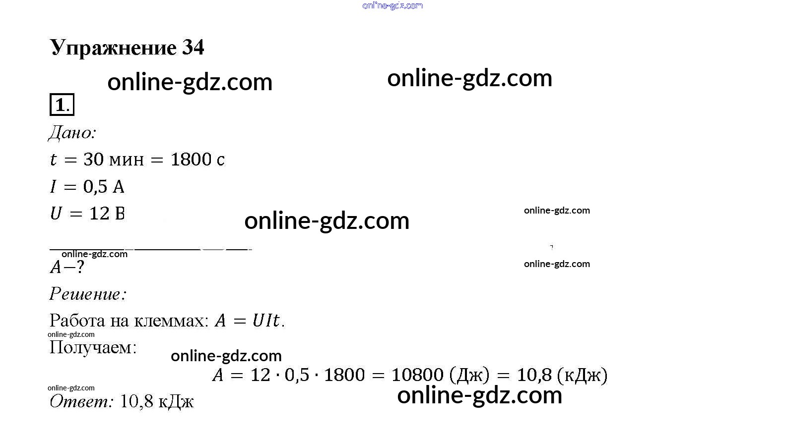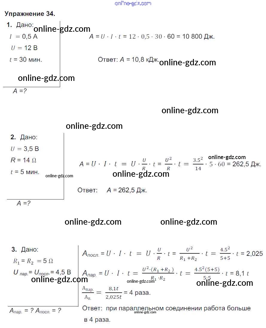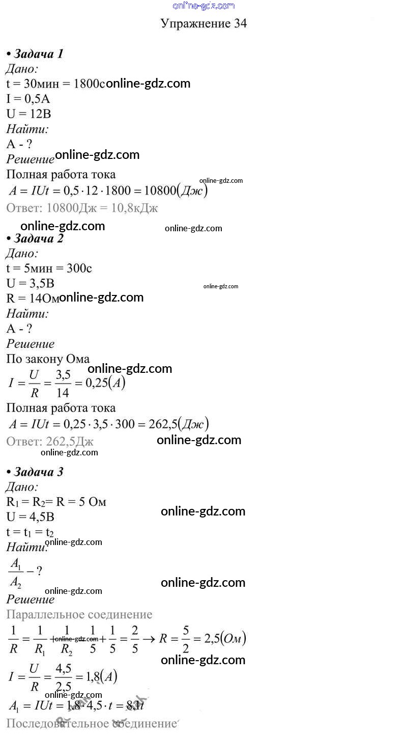 Готовые домашние задания по Физике за 8 класс Учебник Перышкин Вертикаль 2014 - Упражнения Новое издание (бело-красный учебник) 34