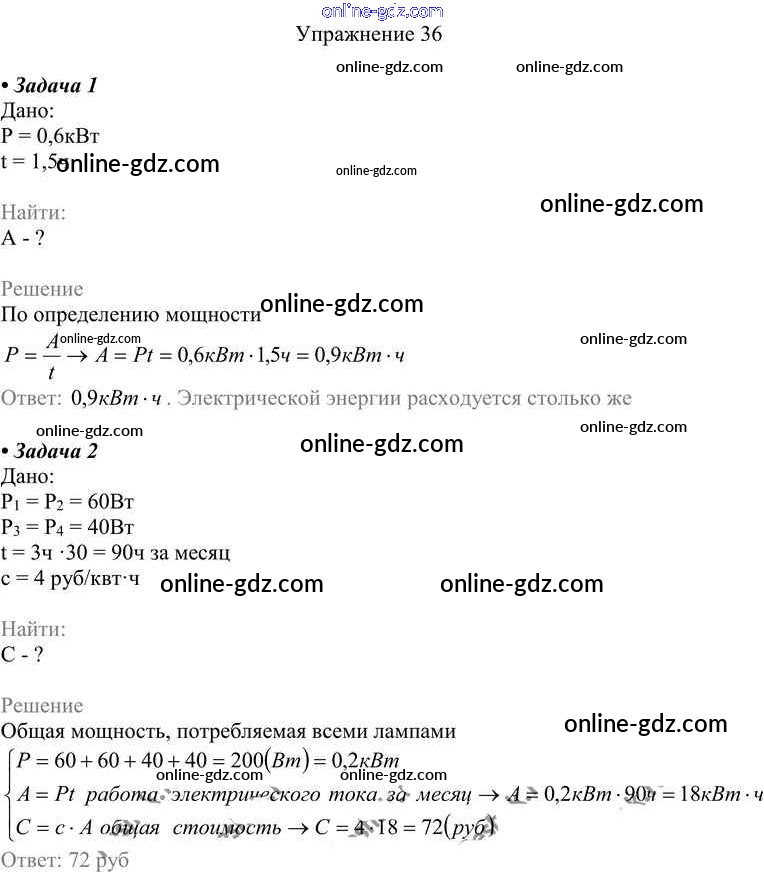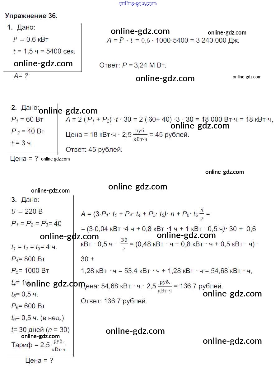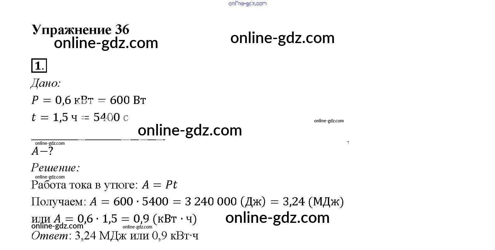 Готовые домашние задания по Физике за 8 класс Учебник Перышкин Вертикаль 2014 - Упражнения Новое издание (бело-красный учебник) 36