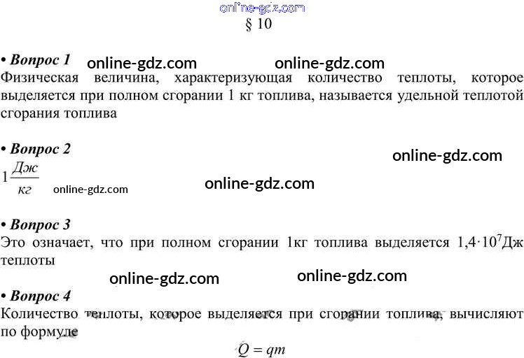 Готовые домашние задания по Физике за 8 класс Учебник Перышкин Вертикаль 2014 - Вопросы в параграфе Новое издание (бело-красный учебник) § 10