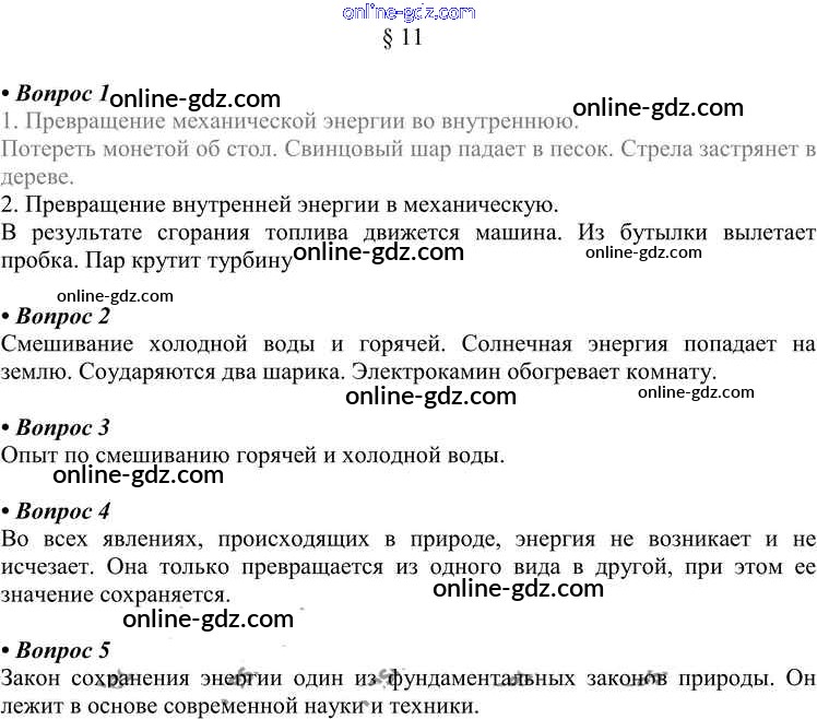 Готовые домашние задания по Физике за 8 класс Учебник Перышкин Вертикаль 2014 - Вопросы в параграфе Новое издание (бело-красный учебник) § 11