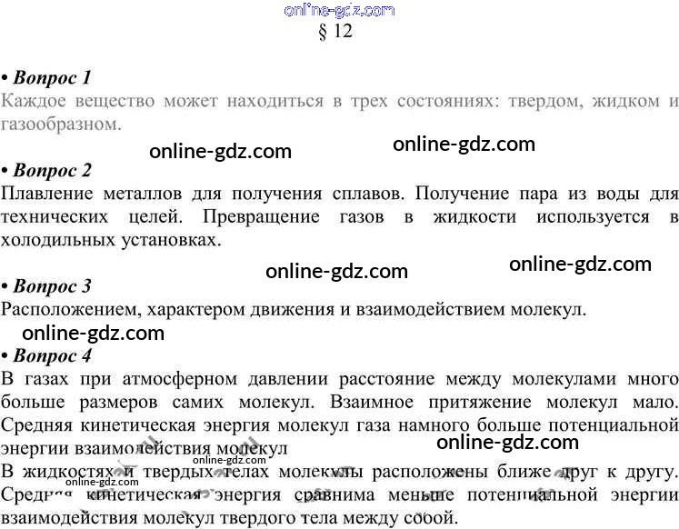 Готовые домашние задания по Физике за 8 класс Учебник Перышкин Вертикаль 2014 - Вопросы в параграфе Новое издание (бело-красный учебник) § 12