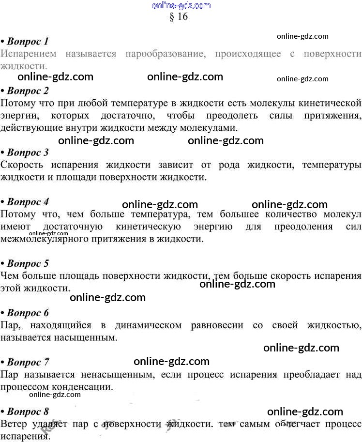 Готовые домашние задания по Физике за 8 класс Учебник Перышкин Вертикаль 2014 - Вопросы в параграфе Новое издание (бело-красный учебник) § 16