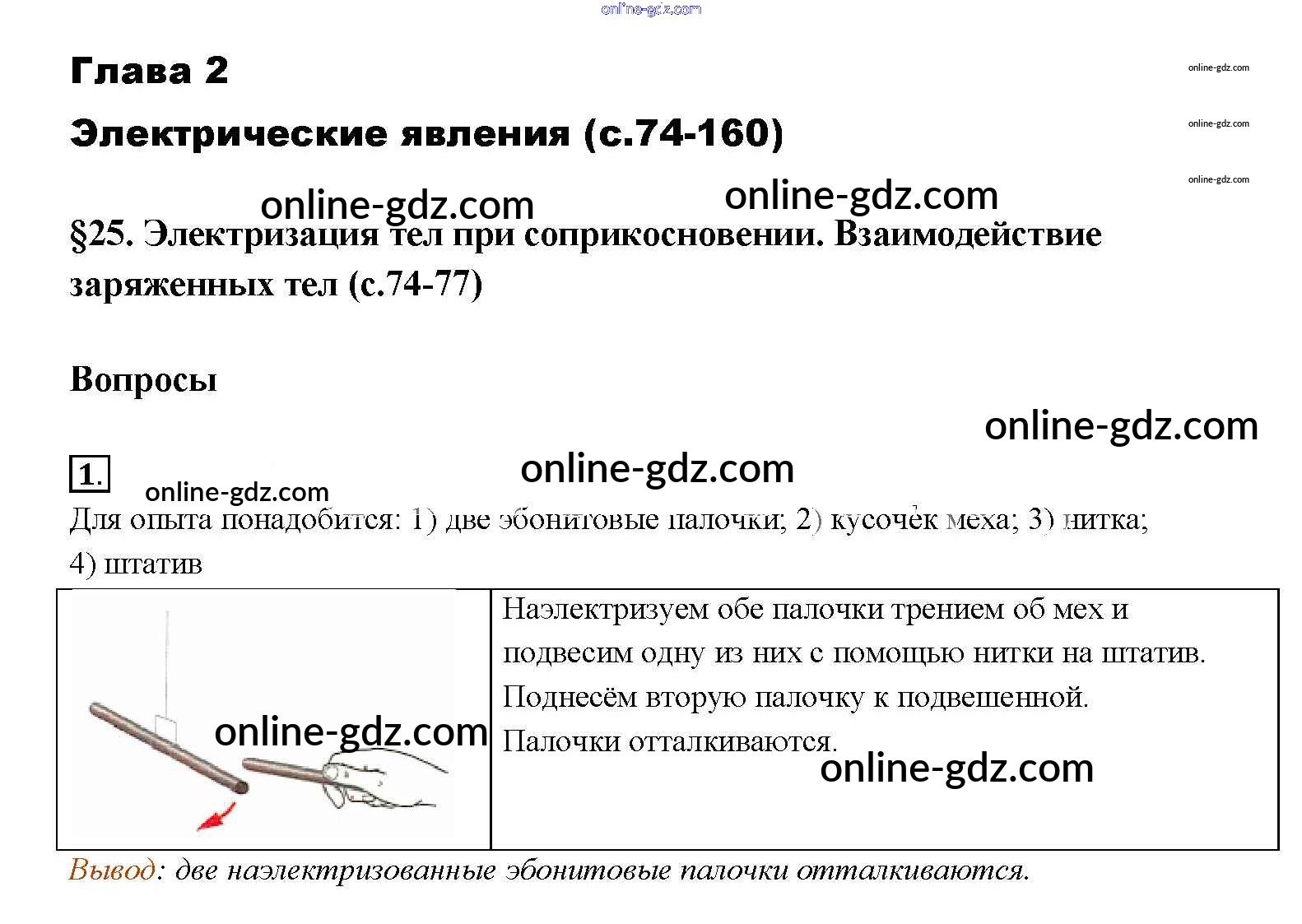 Готовые домашние задания по Физике за 8 класс Учебник Перышкин Вертикаль 2014 - Вопросы в параграфе Новое издание (бело-красный учебник) § 25