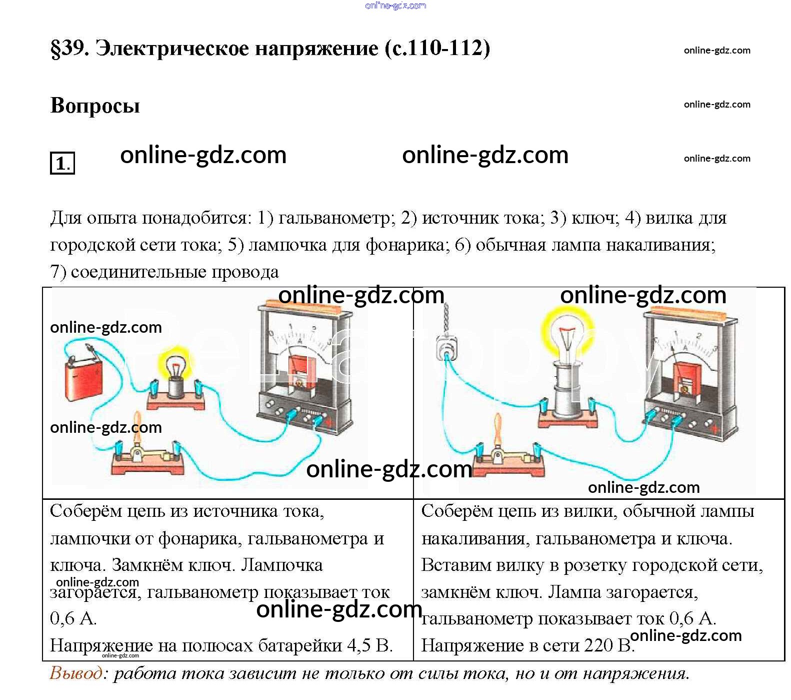 Готовые домашние задания по Физике за 8 класс Учебник Перышкин Вертикаль 2014 - Вопросы в параграфе Новое издание (бело-красный учебник) § 39