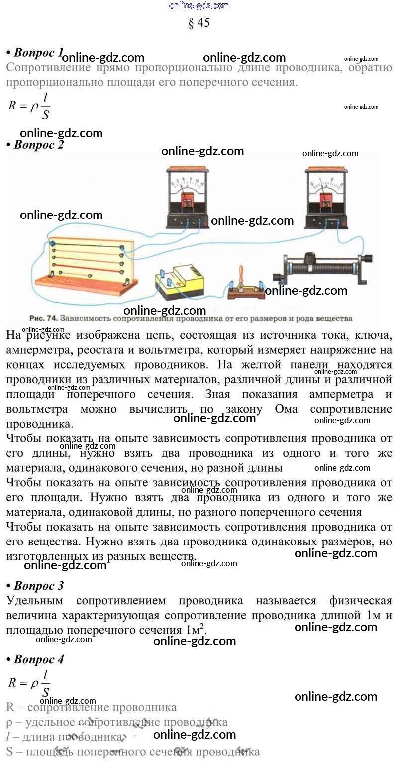 Готовые домашние задания по Физике за 8 класс Учебник Перышкин Вертикаль 2014 - Вопросы в параграфе Новое издание (бело-красный учебник) § 45