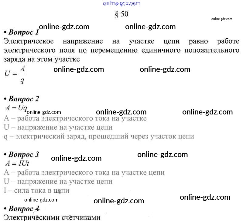 Готовые домашние задания по Физике за 8 класс Учебник Перышкин Вертикаль 2014 - Вопросы в параграфе Новое издание (бело-красный учебник) § 50