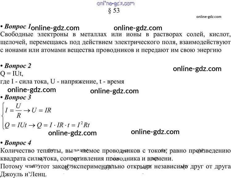 Готовые домашние задания по Физике за 8 класс Учебник Перышкин Вертикаль 2014 - Вопросы в параграфе Новое издание (бело-красный учебник) § 53