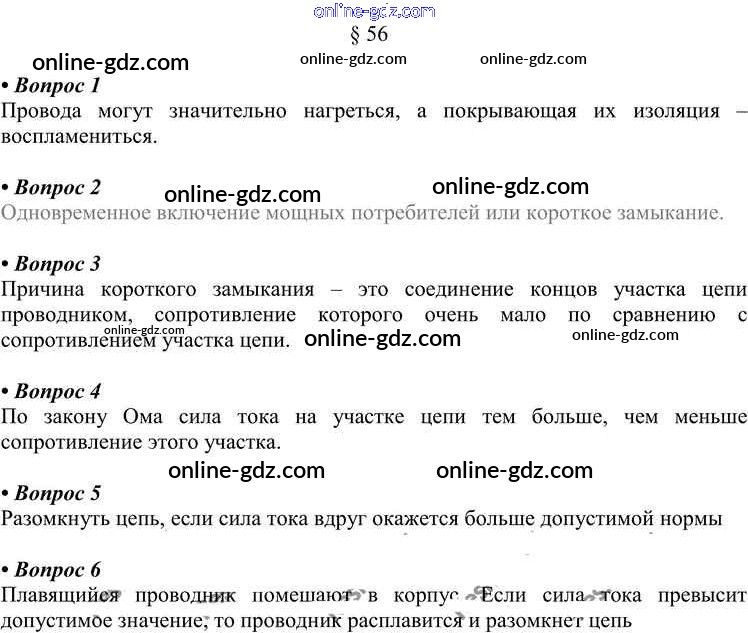 Готовые домашние задания по Физике за 8 класс Учебник Перышкин Вертикаль 2014 - Вопросы в параграфе Новое издание (бело-красный учебник) § 56