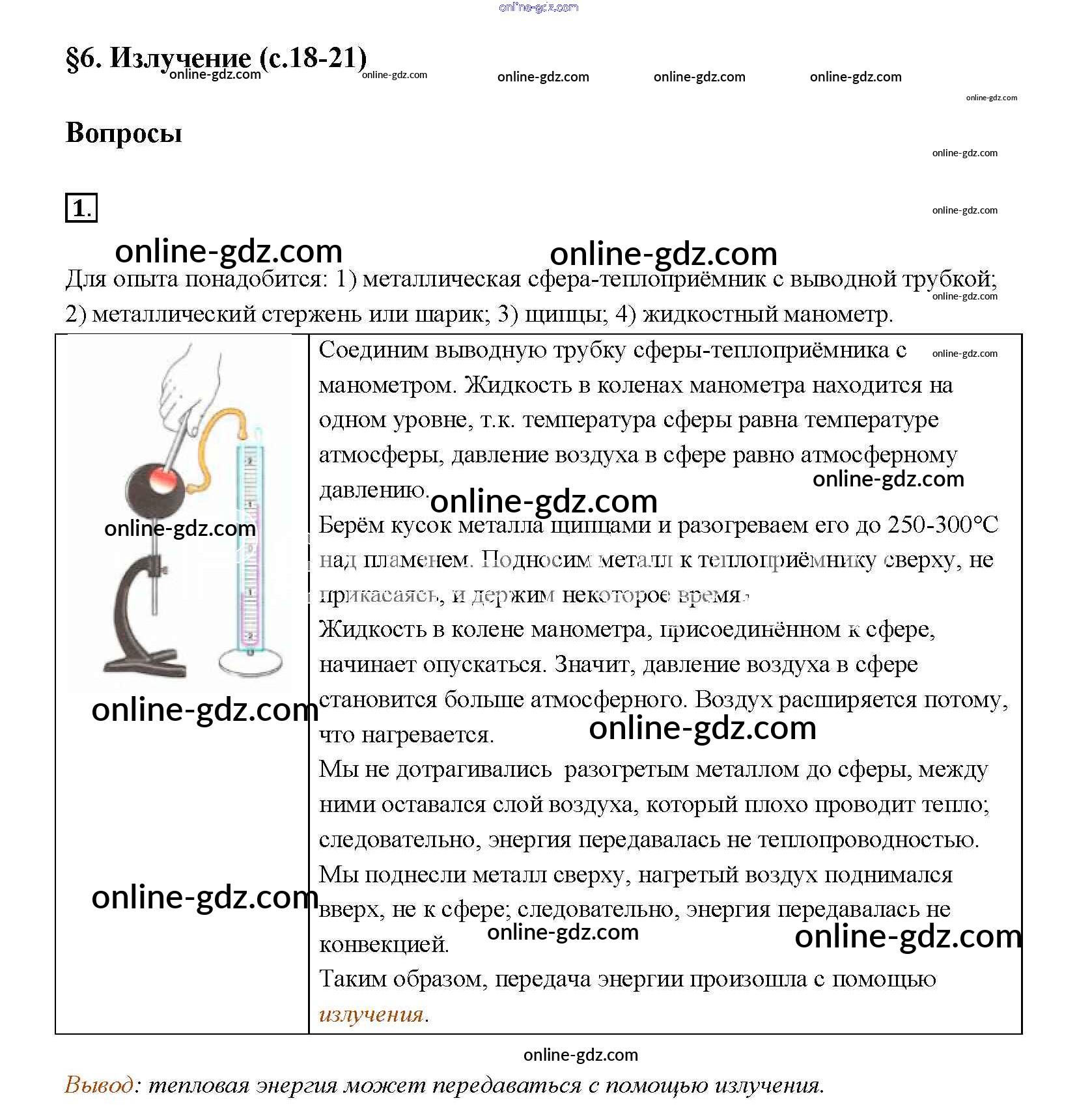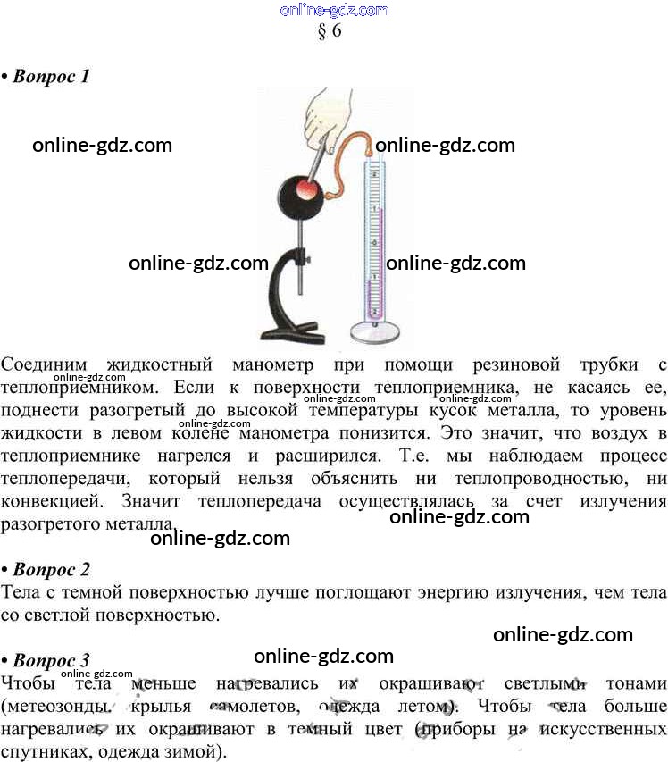 Готовые домашние задания по Физике за 8 класс Учебник Перышкин Вертикаль 2014 - Вопросы в параграфе Новое издание (бело-красный учебник) § 6