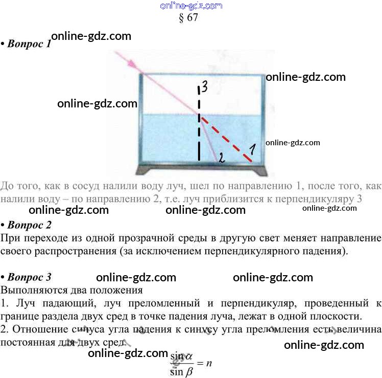 Готовые домашние задания по Физике за 8 класс Учебник Перышкин Вертикаль 2014 - Вопросы в параграфе Новое издание (бело-красный учебник) § 67
