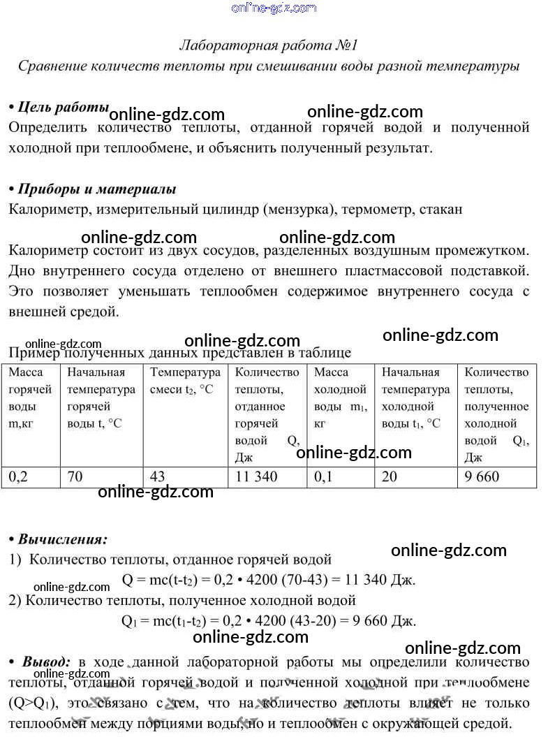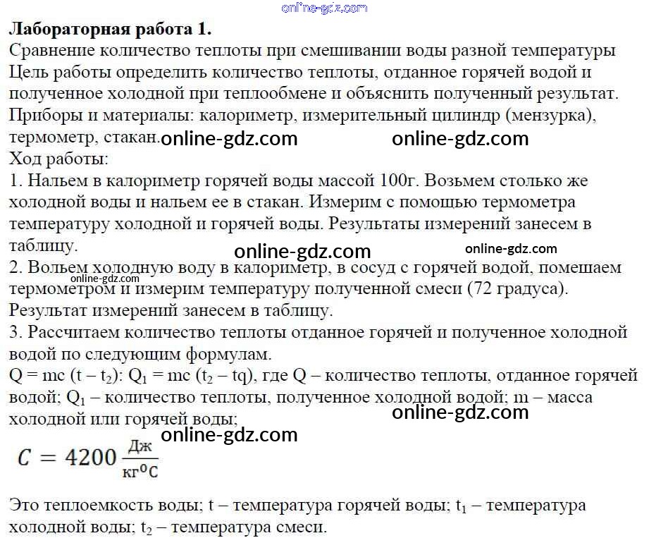 Готовые домашние задания по Физике за 8 класс Учебник Перышкин Вертикаль 2014 - Лабораторные работы Новое издание (бело-красный учебник) ЛР-1