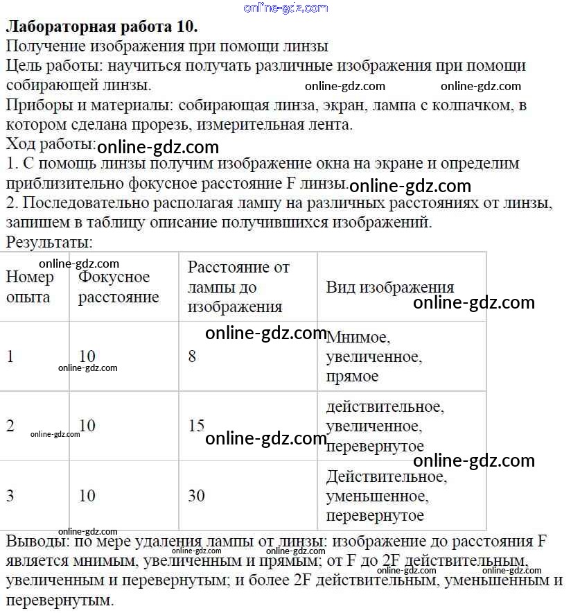 Готовые домашние задания по Физике за 8 класс Учебник Перышкин Вертикаль 2014 - Лабораторные работы Новое издание (бело-красный учебник) ЛР-10