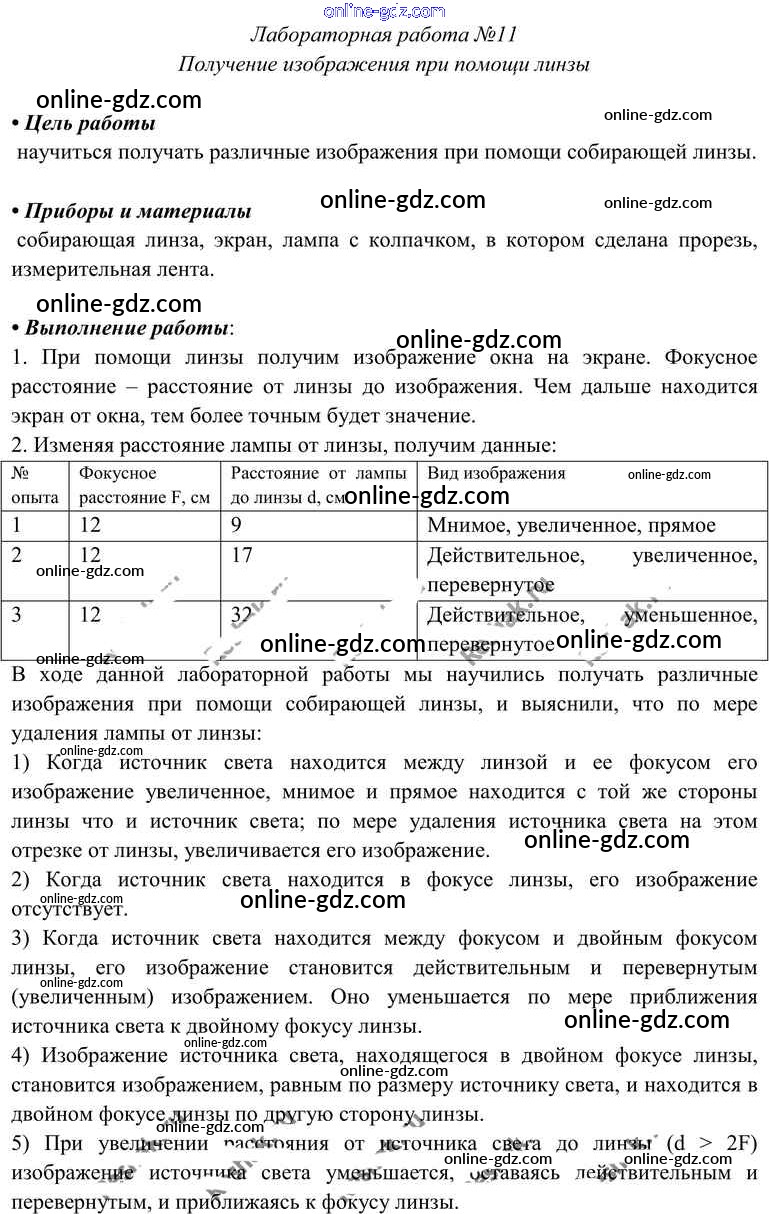 Готовые домашние задания по Физике за 8 класс Учебник Перышкин Вертикаль 2014 - Лабораторные работы Новое издание (бело-красный учебник) ЛР-11