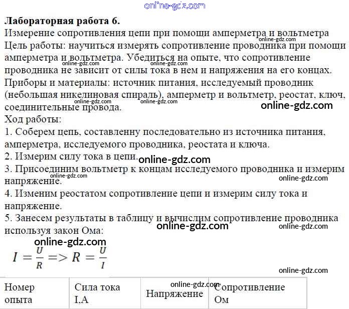Готовые домашние задания по Физике за 8 класс Учебник Перышкин Вертикаль 2014 - Лабораторные работы Новое издание (бело-красный учебник) ЛР-6